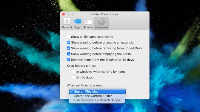 2. Cài đặt cho tìm kiếm trong Finder