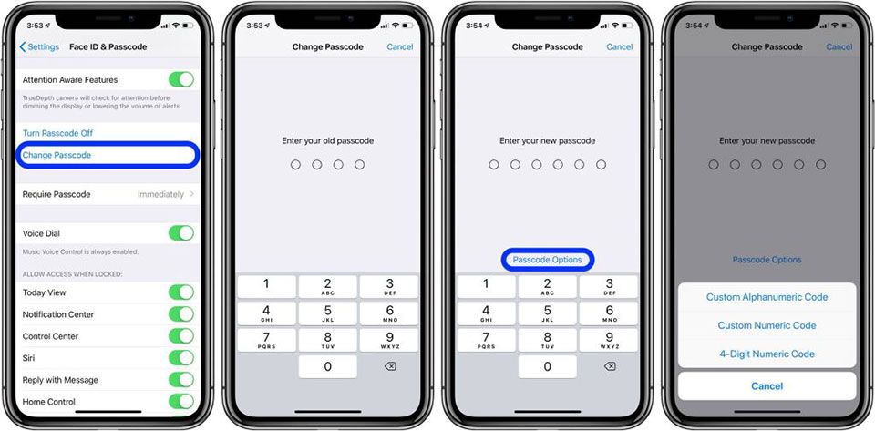 Bạn có thể nhấn "Passcode Options" ngay phía trên bàn phím nếu bạn muốn sử dụng mã chữ và số tùy chỉnh hoặc mã gồm bốn chữ số.