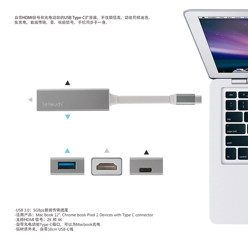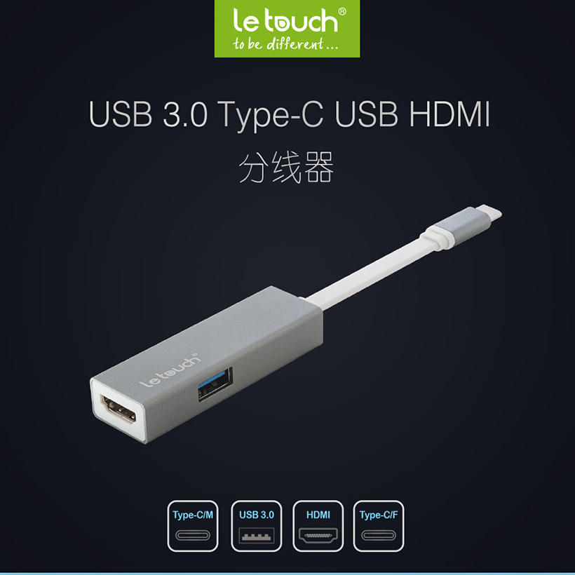 Cổng Nối Letouch USB 3.0 Type-C HDMI Hub Grey