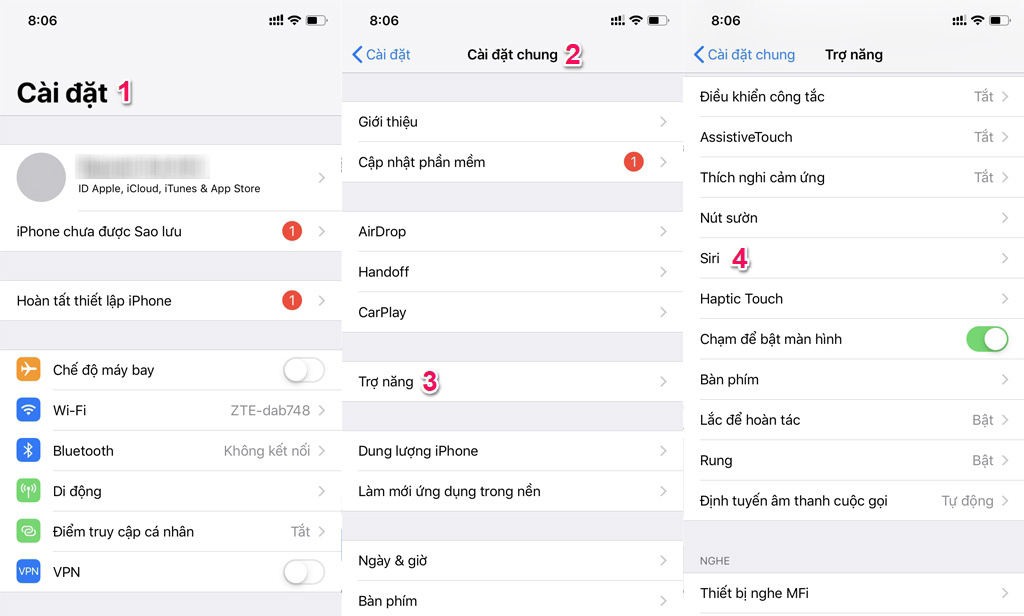 B1: Mở Cài đặt > Cài đặt chung > Trợ năng > Siri (hoặc có thể nhập từ khóa Siri trên khung tìm kiếm của Cài đặt để truy cập nhanh hơn)