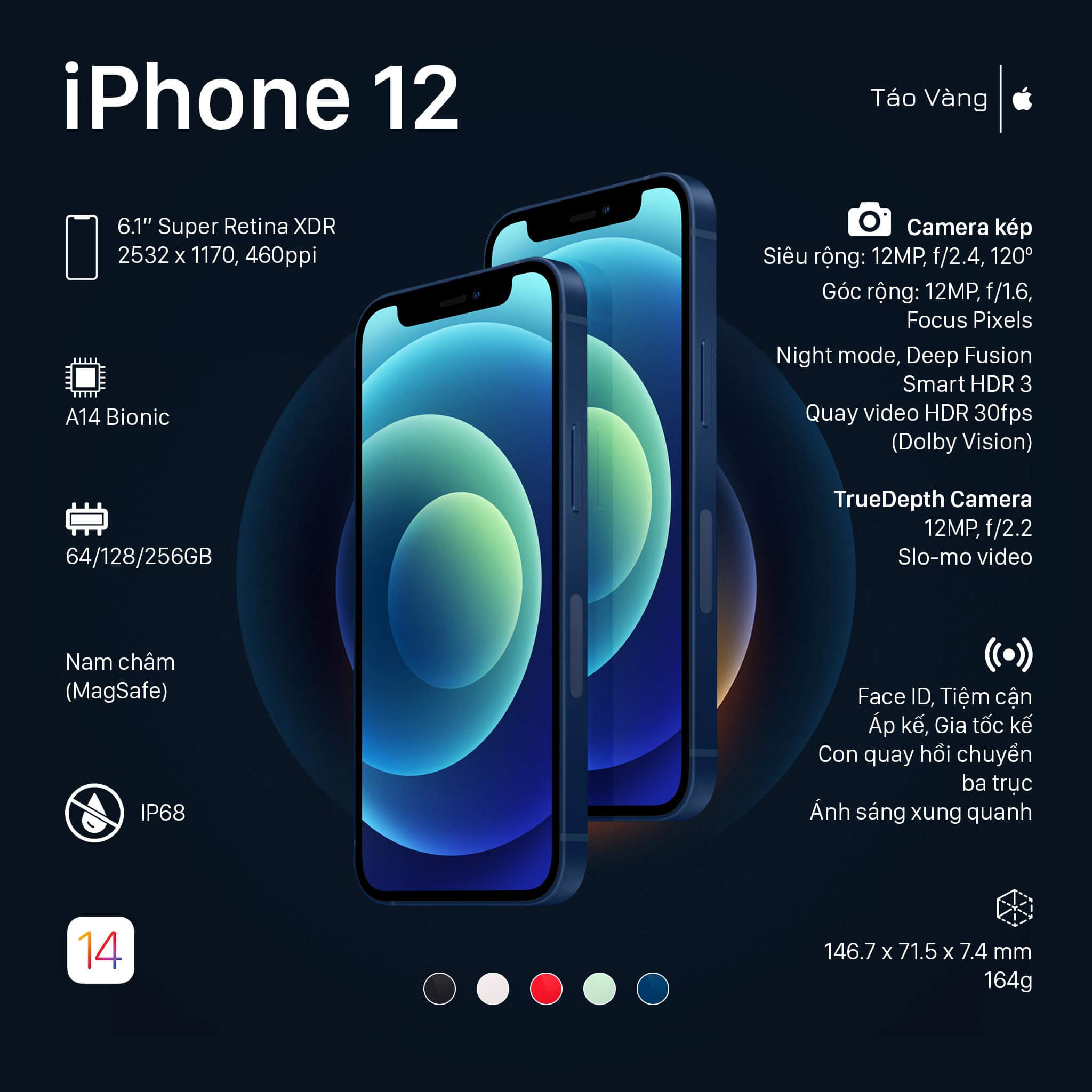 Ngoài ra, iPhone 12 còn có mức RAM 4GB và dung lượng lưu trữ 64 GB. Hệ điều hành chính của máy sẽ là iOS 14 cùng với một số tính năng đặc biệt như chế độ hiển thị màn hình, ứng dụng thể dục, quét mã QR và những nâng cấp phần mềm đáng kể giúp tăng trải nghiệm sử dụng.