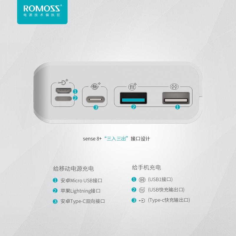 Romoss Sense 8+ không chỉ có dung lượng pin lớn mà còn được hỗ trợ chuẩn sạc nhanh QC 3.0 tiết kiệm thời gian đáng kể để nạp năng lượng cho các thiết bị di động nhằm đáp ứng nhu cầu một cách nhanh chóng nhất cho bạn.