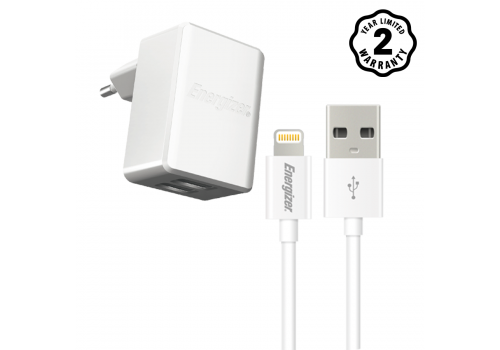 Sạc Energizer UL 3.4A 2USB + Cáp Lightning - Thiết kế siêu nhỏ gọn, dòng cao giúp sạc nhanh hơn