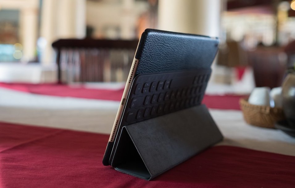 Phụ kiện vừa bảo vệ màn nhình, vừa là bàn phím và vừa là đế giúp iPad đứng nhẹ nhàng và thuận tiện sử dụng nhất. Chưa từng có bàn phím nào có đủ ba tính năng như chiếc Smart Keyboard này của Apple làm cho iPad. Trước đây một số bàn phím làm cho iPad có thể gập lại được như là máy tính xách tay thì thường rất to và nặng. Những bàn phím nhẹ nhàng khác thì lại không có tính năng bảo vệ hoặc đơn giản chỉ là chiếc bàn phím, muốn iPad đứng được ta lại phải mang theo một chiếc chân chống khác.