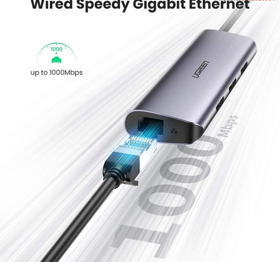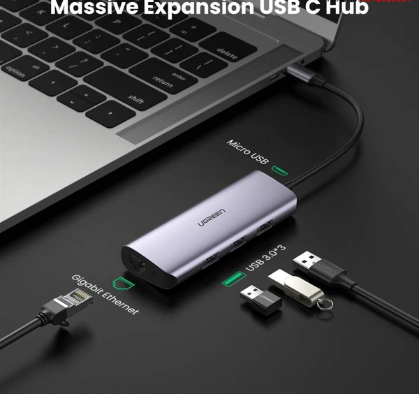 Hub USB Type-C Ugreen 60718 cung cấp giải pháp đơn giản để nâng cấp PC của bạn, mở rộng 3 cổng USB 3.0 và 1 cổng mạng Lan Gigabit Ethernet và cổng sạc Micro USB, USB Type-C, tương thích với Thunderbolt 3, cho phép máy tính xách tay của bạn truy cập nhiều hơn nữa, để làm nhiều hơn nữa.
